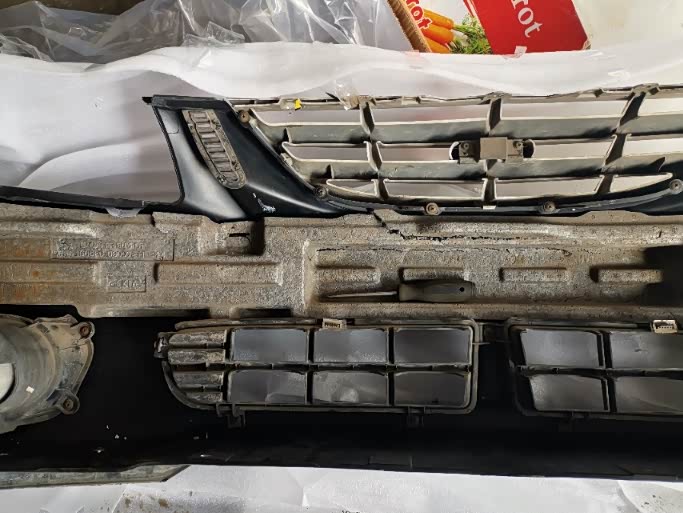 这是前保险杠里边儿的防撞泡沫,这个东西很硬,也确实也很有效果,嗯,低速的碰撞可以起到很好的缓冲作用。现在貌似好多的车都没有这个东西吧,只是一个前保险杠的塑料壳子再加一个防撞钢梁。中间少了很多缓冲的东西,其实这个就是简配。