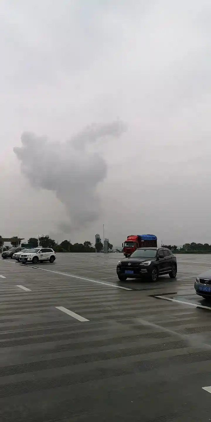 路上堵车,那边是高速路修路的地方,很多工程车排队呢