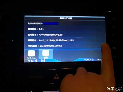 东西都准备好了,把厂家给安装程序拷U盘里,车子启动前先插上U盘,开机在设定界面中,进入版本信息