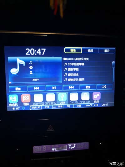 这次升级后除了有大时间屏保外,开机后也不用再去点注意事项那个同意按键了,在收音机和音乐的界面也有大时间显示,另外自己也可以把喜欢的图片放到车机上进行屏保显示(屏保图片的格式要是BMP格式),真心不错哟