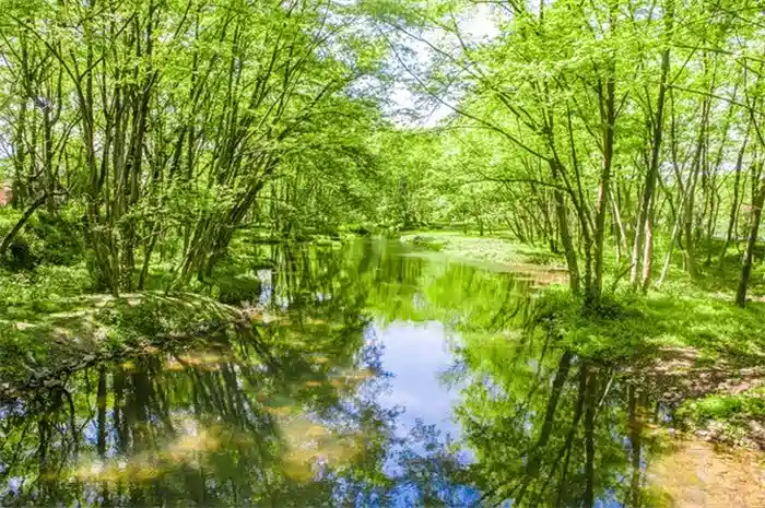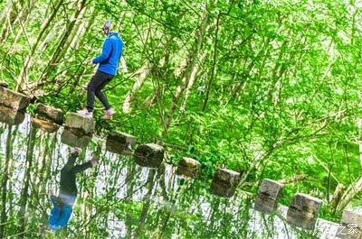 这里是被青山绿水所包围的田园生活,古镇依水而居,一大片湿地内种满了枫杨林,树枝交错相连,顺着河道蜿蜒,倒映在清澈的碧水上,就是印象中的绿野仙踪之地,小方块的小桥特别的很,周围绿树环绕,在这里还是春天那般清新的模样。