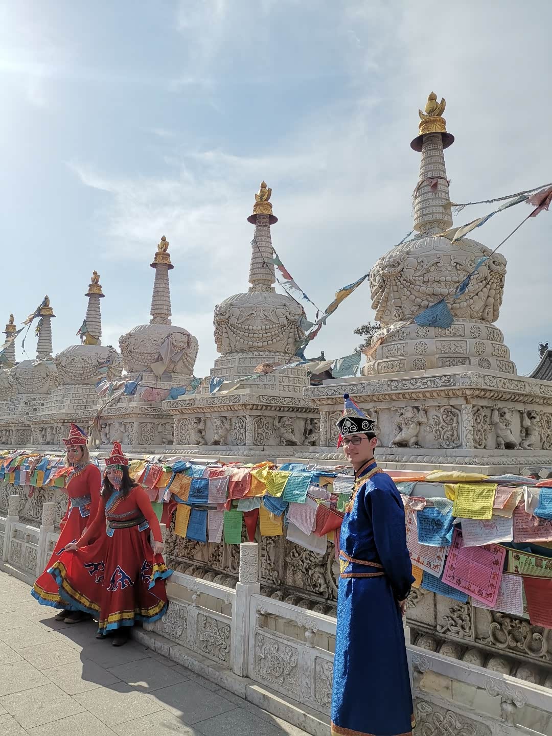 一群老外换上蒙古服饰还挺像那么回事。我也顺便咔嚓了一张。