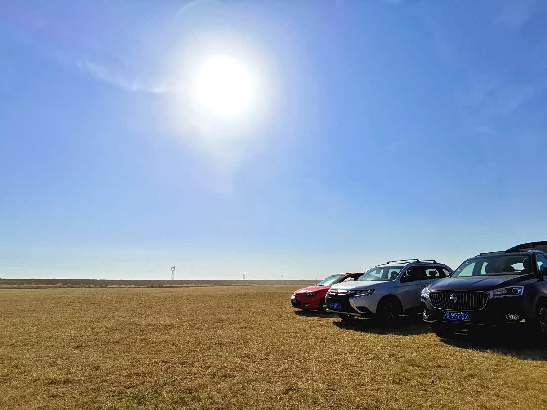 第二天一早来到草原。天气好。心情也大好。先给三台车合影一张。宝沃两驱。一马三。只有小欧有四驱。临时充当一下保障车吧。哈哈。谁让咱们矬子哩拔大个呢。