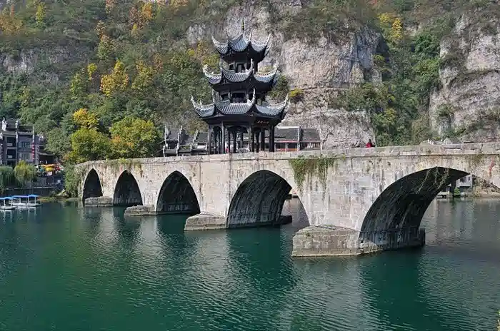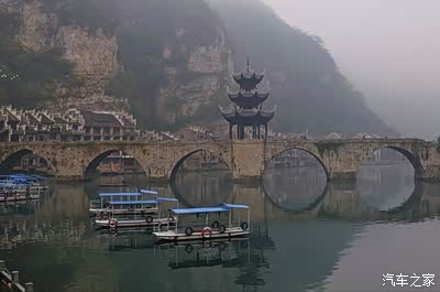 潕阳河将镇远古城一分为二,南侧为卫城,是古代卫戍部队的驻地,北侧是府城,是州镇府衙所在地。在卫城和府城之间,现留有两处摆渡点,摆渡船也成了方便快捷的交通工具。从府城大码头到对岸文化公园的摆渡最有风景,坐在摆渡船上一边是祝圣桥、青龙洞,一边是新大桥和两岸商肆,从河面上观景,别有一番味道。镇远的摆渡船可载10人左右,有船夫摇橹。船头放一小筐,乘客自觉投币在筐中,现在费用涨了,每人次1元,若无零钱,则投入整钱后自行在筐内找零,如实在没带钱或筐内零钱不够找零,船夫也不会拒绝上船,其民风之淳朴可见一斑。