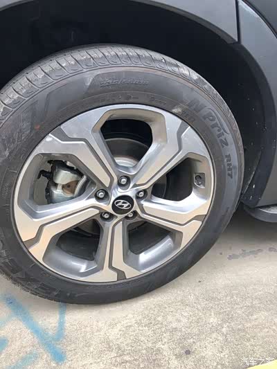 新胜达的轮圈设计用的也是双色的搭配,看起来还是挺好看的,不过跟欧蓝德的轮圈相比我感觉还是欧蓝德的好看很多.
