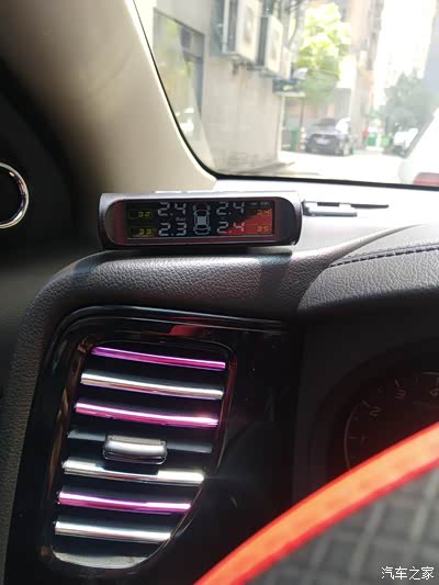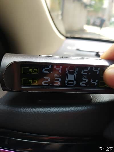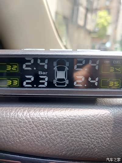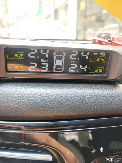 四个气嘴安装好 这个显示器立马就有数字显示出来了,,三个2.4 有一个2.3 看来还是有必要安装这个,等下去店里充点气