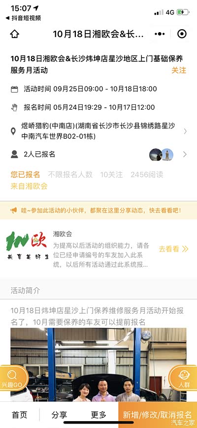 湘欧会合作的4s店,还提供上门保养,保养价格还打折。真的很实惠。早早就报了名预约![]()