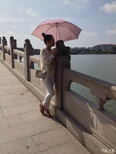 看得出桥面非常宽,三四辆马车并行行驶都没有问题。拱桥两旁设有石护栏,护栏的每根柱子上都雕有小巧玲珑的石狮子,格外别致,吸引了我的眼球。