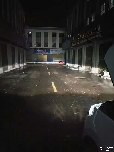 白光与锋利的切割线,本想对着灯照张远光照,结果试了几次都没照下来,太亮,手机都死机了,再也不怕走夜路了,早发现行人障碍物,保证安全行驶