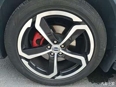 说到大气,斯威的侧面是最能展现大气一面的,大气中还带点霸气。作为一款城市SUV,它也在尽力营造一种运动的氛围,从它薄薄的胎壁和红色的卡钳就能看出,市面上在售的车型,这样的搭配不多。挺精神的。
