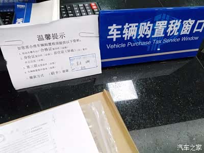 去到交资料,等工作人员把资料审查完之后就可以交钱了,交钱是刷卡的,储蓄卡或者信用卡都可以使用。刷卡之后就打印购置税本子,然后就OK了。2018年购置税没有优惠:购置税=发票价/11.7