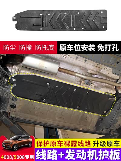 当我提着我的东风标致4008回家以后,第一件事就是给买了脚垫和各种装饰的东西。后来加入车友群以后,看到很多车友都在讨论要不要给小狮子的发动机加个发动机下护板,说是可以在非铺装路面行驶的时候起到保护发动机的作用,我看到这个事以后我就立马在网上寻找合适的发动机护板来保护一下我的小狮子的大心脏,觉得他们说的很有道理。经过多方寻找和对比后,在网上确定了一款适合小狮子心脏用的下护板,赶紧下单订购发动机板。在购买发动机护板的同时,还看到了线路护板,我也一并下单购买。这些护板都是原车位安装免打孔的,所以非常的方便。护板到了以后赶紧找了一家修理店给两块护板全部安装到位。当我询问师傅是否有必要安装的时候,师傅给的回答是肯定的,安装护板是可以一定程度保护到线路和发动机的寿命,听到师傅的肯定回答以后我也暗暗自喜自己的选择是正确的。发动机护板我也听到过不一样的声音,有人说如果装了护板以后,万一出现重大事故会影响发动机下沉,给前排人员带来一定的伤害。我的看法是做一名有素质又合格的司机,是不会出现这种情况的,但是也不能排除别人给你带来的伤害,但是自己做到了以后也就能给自己带来足够的安全。如果真到了那种情况下,及时没有安装护板,我想也是凶多吉少的发生。在安装的过程中,我还听到师傅说了一些话,让我对选择小狮子是一次正确的选择。师傅说法系车真的舍得用料啊,底盘装甲都给你喷过,轮胎居然舍得用米其林的轮胎,真的是舍得下血本。当我听完师傅的话后,我对着师傅笑笑,心里得到的答案就是能从维修师傅嘴里说出这么简简单单的两句话,足以说明法系车的质量杠杠滴。