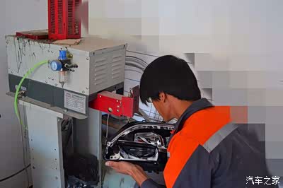 上车一调试擦干净之后就开始合灯了,师傅正在认真的注胶合灯