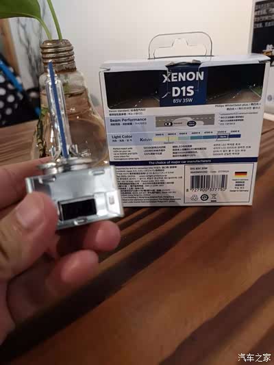 接下来是氙气灯泡,飞利浦最新款的WHV灯泡,5000K的色温,看了那么多改装案例也懂了色温越高越白,不超过5600K就好,不然穿透力不好,5000K的色温老板介绍说白中带黄,接近于中午12点的太阳光,也是很专业的讲解。来张灯泡特写,飞利浦到底是大品牌,包装都显得这么高端大气,也是正品的德国血统,老板说这款灯泡是目前装的最多的,并且没有出现售后问题。