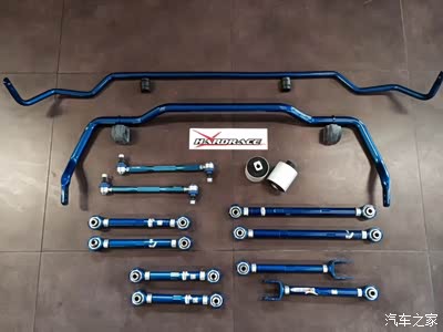 HARDRACE防倾杆、摆臂胶套、全车拉杆、DIXCEL刹车皮、刹车盘、钢喉和油。