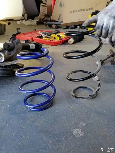 单换弹簧还是很麻烦的,需要把避震气筒拆下来呢。