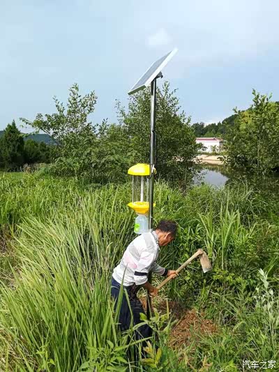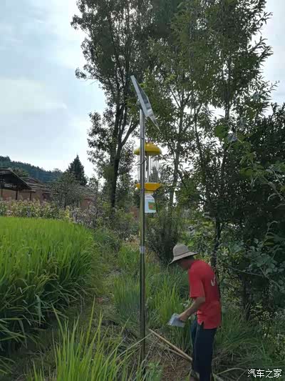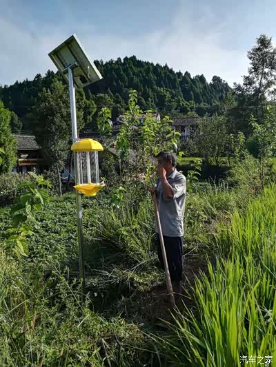 夏天,给农户安装太阳能杀虫灯,吃上生态米