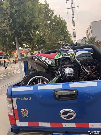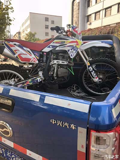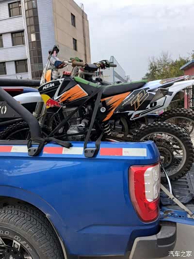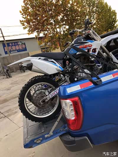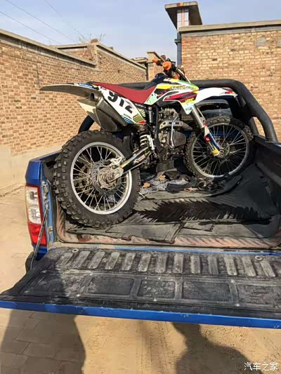 自从买了皮卡之后我除了拉货干活,我还拉着我的摩托和小伙伴们出去玩一圈,这个爱好也让我有了个副业,“倒腾摩托”,看我之前的帖子就知道我的身材还是挺胖的,但是没想到我还是个摩托车爱好者吧。哈哈, 正好趁着刚刚改装完的车出去兜一圈顺便给他们送摩托 !先装上摩托,领主的后斗还真大 两台摩托不在话下