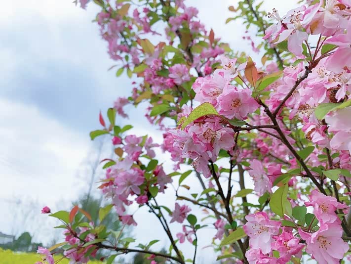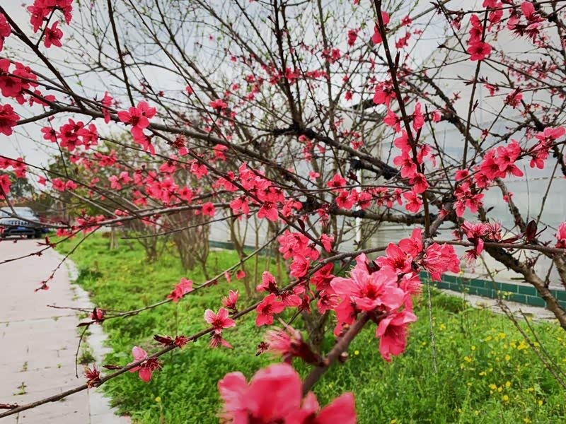 桃花、李花、樱花、玉兰点缀在道路两旁,