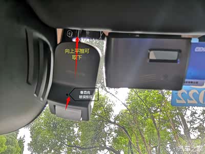 记录仪的底座是双面胶粘贴在玻璃上的,记录仪与底座是卡扣卡槽固定的,按住记录仪,向上滑动,即可摘下。