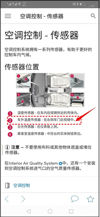 车外温度传感器在车外后视镜下方