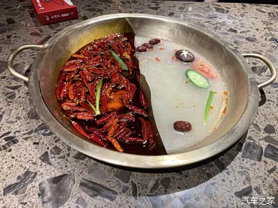 小龙*家的鸳鸯锅,鸳鸯锅已经是我能接受的极限了,左面的是微辣(吃一半还把辣椒捞出来了,不然真遭不住)