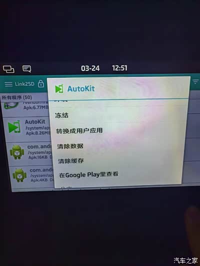把实现carplay/hicar的必备的软件AutoKit装好了,并用Link2SD将其“转换成系统应用”,然后用“ADB reboot”命令重启车机