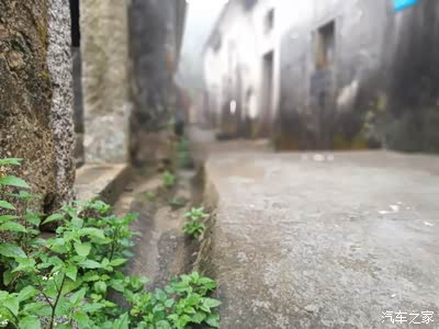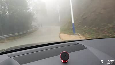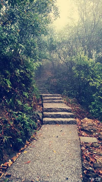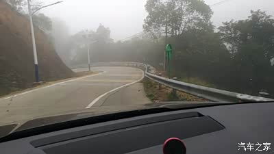 水泥路面,但是路并不宽,今天刚下过雨,雾气大,视野不太好