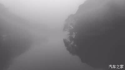 继续行车上路,看到一个湖,雨天有特别的朦胧美