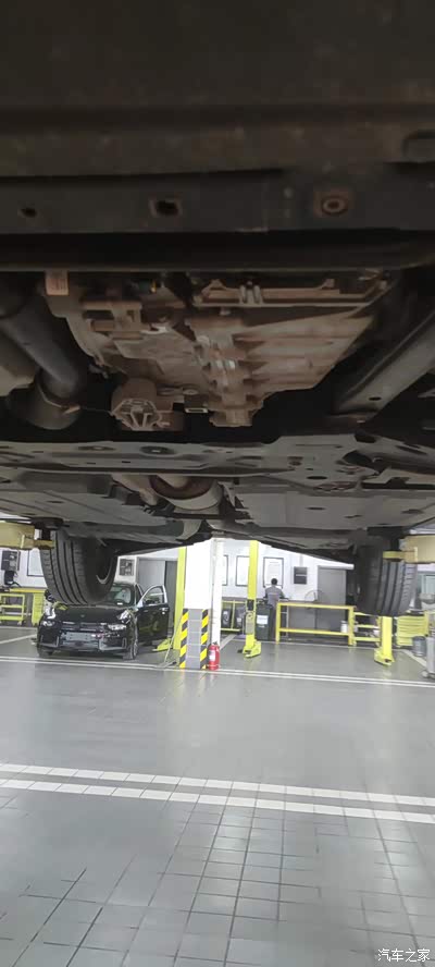 自己目测了一项——底盘应该没有损坏。感觉领克汽车品质还是值得一夸,标配底盘钢板。