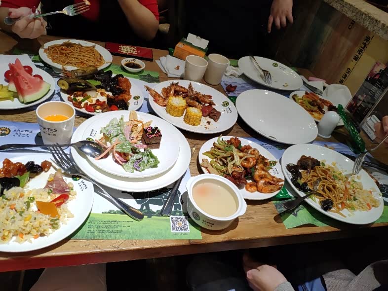 拍摄结束后,各自奔向晚餐据点,晚饭我们吃巴西烤肉自助餐哟![]()