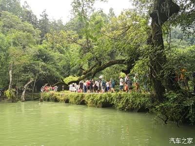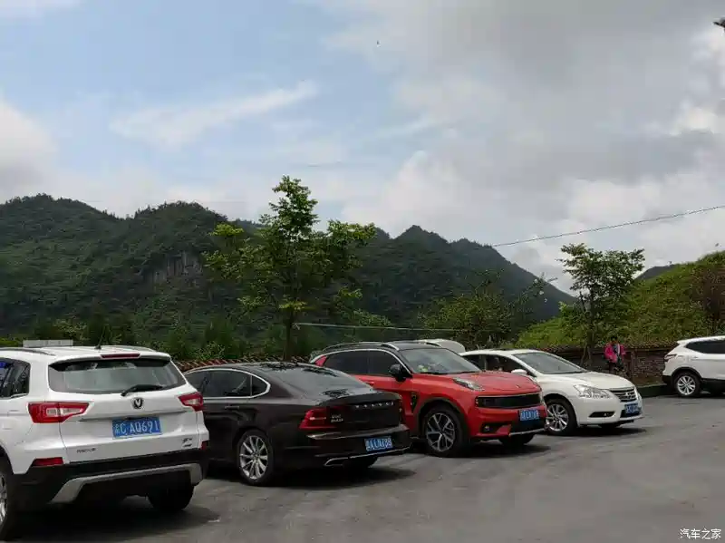 第三天继续向黔南的小七孔进发,当天一直在下雨,在途中遇到暴雨加浓雾,劲红的四驱能力得到了充分的展现,路虽滑但是领克01劲在经过弯道时依旧很稳健,马牌轮胎抓地力不错,车身没有感觉侧滑,自动感应雨刮器也相当给力,随着雨量的增大,雨刮器的速度也不断加快,有效保证了驾驶视野的清晰,有惊无险到达小七孔镇。小七孔景区人爆满,排队一个多小时才买到票,但是景区管理跟不上,秩序有点混乱。好在景色还不错。有点九寨沟加黄果树瀑布的感觉。景区门口的这辆国产特警专用车够霸气,