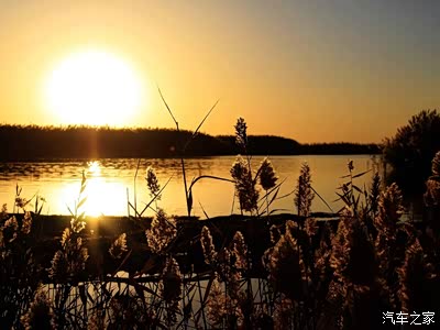 四围是蓬蓬勃勃蔚为壮观的芦苇荡,顶端都举着扫帚般的苇花,在初升的霞光里,每一朵原本平淡无奇的雪苇都被镶上了一层金色的光晕,象一簇簇燃烧的火把,炫耀在大漠碧水之畔。