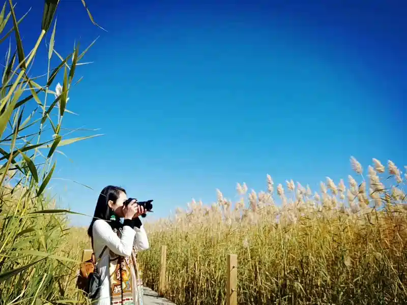 走才发现这里的芦苇长得特别的高大,至少有两三米高,恐是得益于湖水的滋润,阳光的拥抱吧。