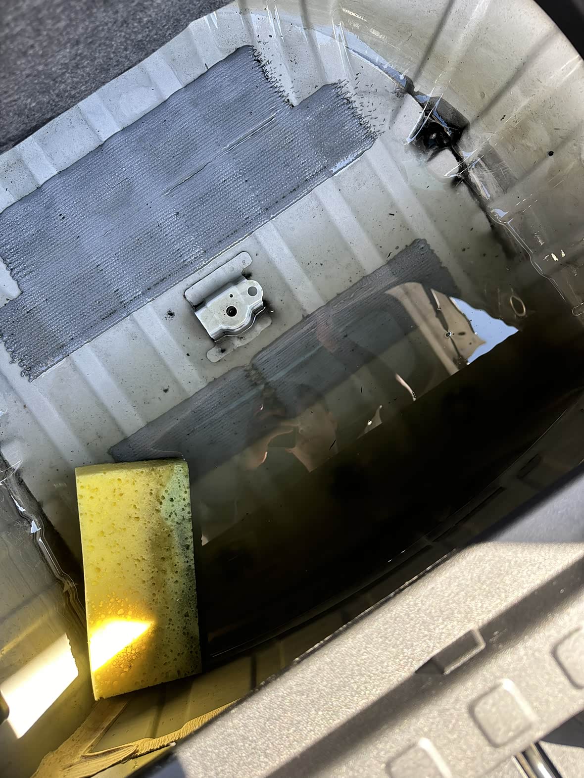 2018年12月的探界者御界版,目前跑了3万6千公里里程。今年5月开始发现只要下大暴雨,后备箱备胎放置槽都会积很深一滩水。当时车内异味严重,还以为是死了什么东西在车内,有天外甥做我车,说好臭,觉得不得不清理下了,掀开后备箱活动板,积水赫然显现眼前。后来自己用密封胶把尾箱和后窗玻璃四周都点胶密封了下,昨天下了场大暴雨,尽早进车内又闻到浓重的潮气味道,果然又发现积水了。哎,必须找4S店处理了,自己不会拆解,也不知道问题出在哪。