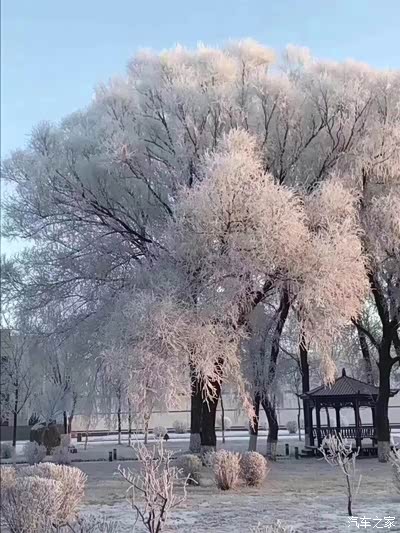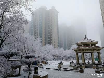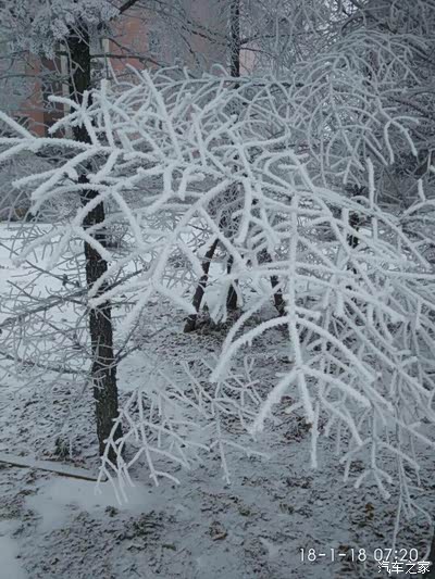 沈城经历了一夜超强大雾,干燥的城市变得湿润。严寒的冬季使雾中潮湿的水汽在空气中直接凝华形成乳白色冰晶沉积物,竟在今晨出现了雾凇奇观。