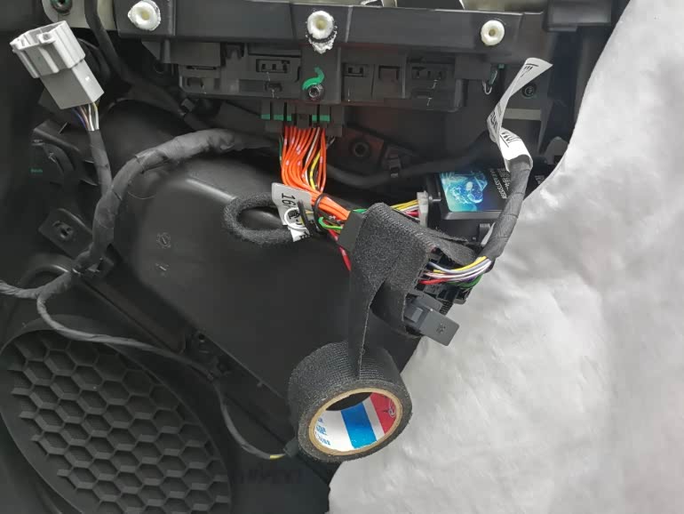 然后用绒布胶布把转接线头包裹好,目的也是为了避免异响。