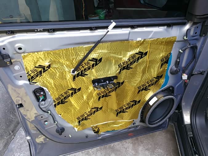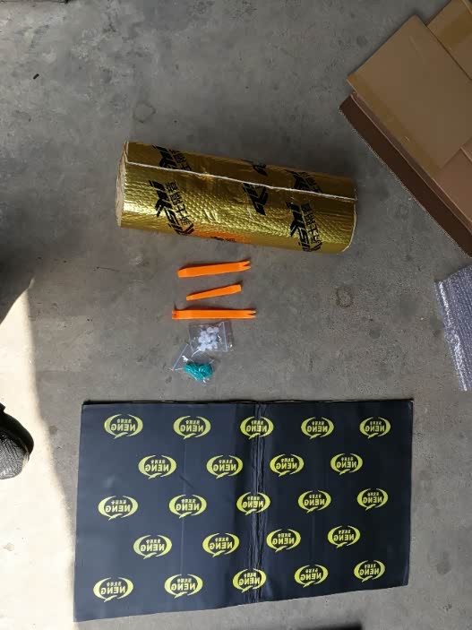 搞完外观又感觉小探的音质比较差,于是又开始计划换小探的喇叭,于是又开始在网上买材料,买了一块厚的止震板和一卷铝箔面的止震板,材料到齐准备好工具便开工,先做车门隔音。
