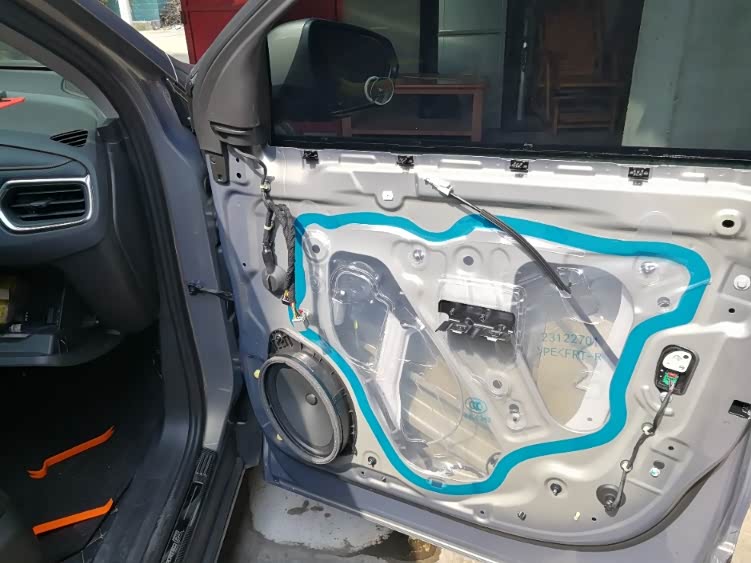 在网上查了相关教程于是开始第一步先拆车门内饰板,要先拆掉门板上的3颗螺丝,再用工具从车门的下面翘开一个口子,再用手慢慢往外掰,因为用力较大自己还是掰断了几个卡子,还好备用了有卡子。探界者的车门确实比较薄,做了车门隔音开关车门的声音好听了些,原车喇叭的低音效果提升了一点点,但对隔绝噪音的效果没有感觉有好明显。