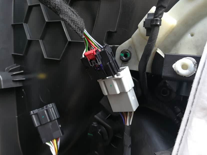 拔掉驾驶侧门板的插头,直接插上模块的线头简单搞定。