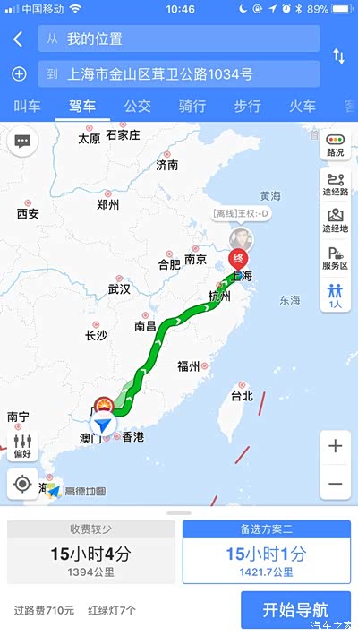 到了三清山之后,我在服务区小睡了半小时,还剩下最后的500公里我准备一下子开掉!预计在晚上6点前能够到达上海!