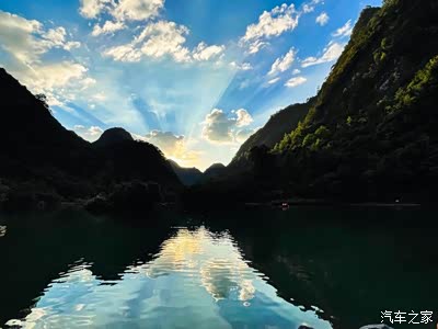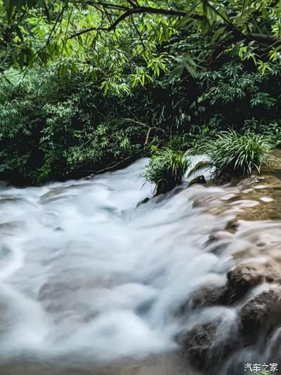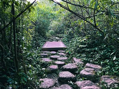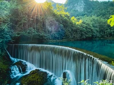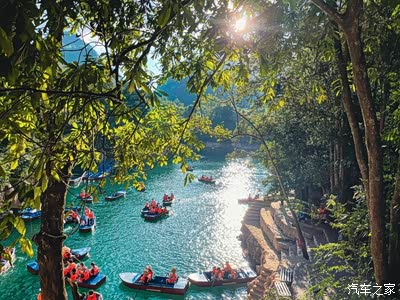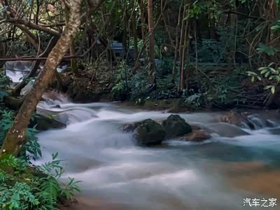 如果你想划船可以选择来一趟鸳鸯湖,刚好傍晚时分,阳光从山间洒落,碧绿的湖水透出粼粼波光。水上森林与石上森林我已经搞不清谁是谁,反正这是我们两个半天的交界处。森林里面徒步1公里多,在这样的石头上穿行,可以看到涓涓细流的小溪和小瀑布。