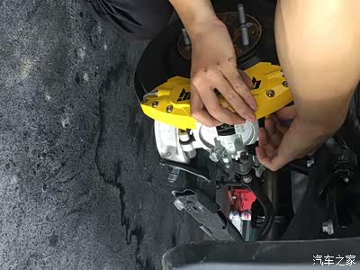 卡钳罩塞进去,然后上螺丝。这里值得说下的是。图片固定件的左右位置被原车卡钳的凹陷部位卡住的,卡钳罩的螺丝孔螺丝上紧了,无论怎样都掉不出来。 上下的安装方式一样,所以安全性很高。