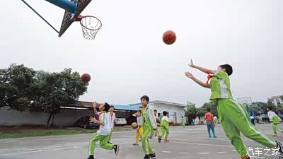 我们的车队停在学校的篮球场,不远处就是学生们上课的教室。