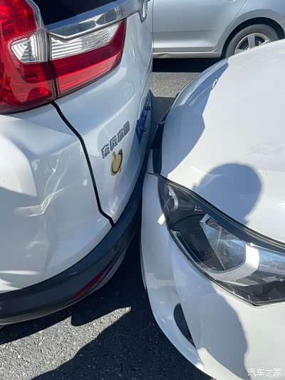 本田crv不明显损坏,只有一处轻微凹陷,手机都不好拍出来。致享车牌变形,保险杠裂了。由于我没有买车损,所以报个保险让对方去修车了。自己这个不修其实也可以。