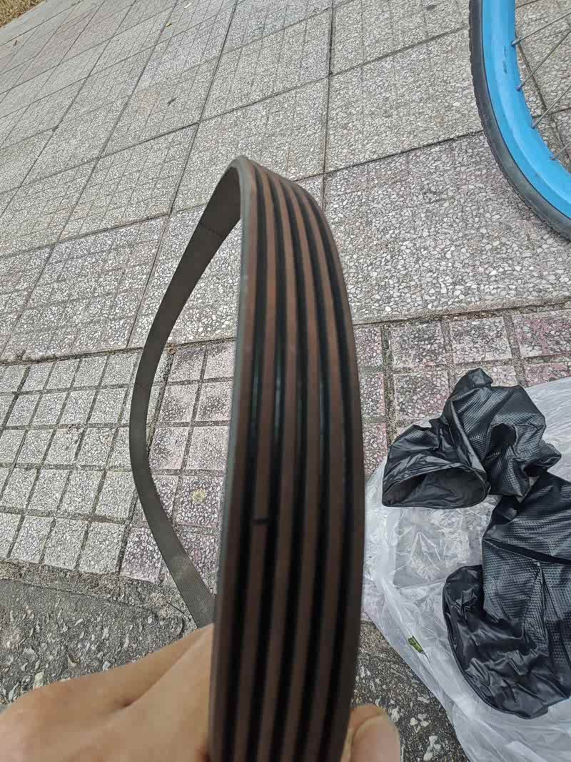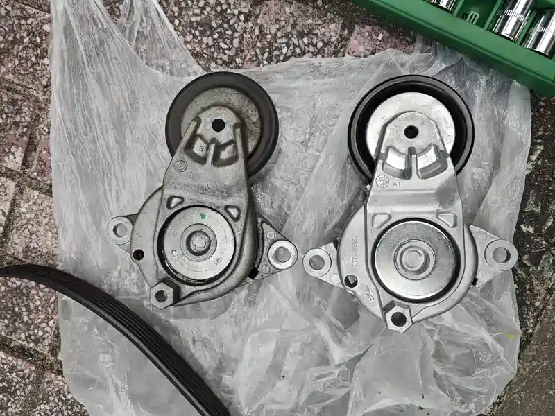 2017款致享八年车十一万公里行驶40到50会有咕噜异响,网上入手配件自己动手更换,换下17款配件,皮带有多处裂纹,涨紧轮还能用,换上25年份配件,声音无了,看下能顶多几年算了