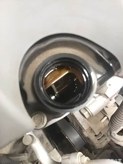 然后把机油加注盖,完全拧开放一旁,做这两项准备工作就是为了一会儿放机油的时候,不受真空效应影响,旧机油放的又快又干净。