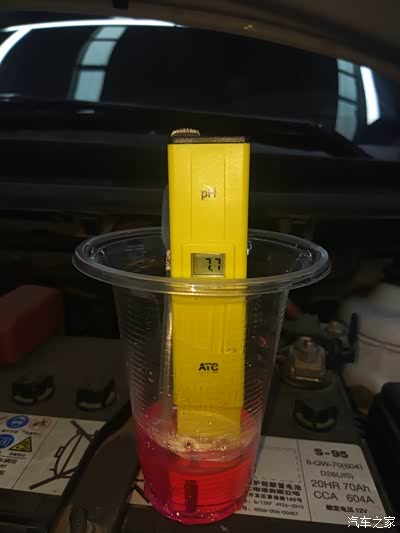 用酸碱度检测仪测试的结果是7.7,数据完全没有变化。虽然7是最中性的,但是厂家考虑到防冻液在使用过程中,发动机会产生一些酸性物质,所以碱值会调的稍微高一点。