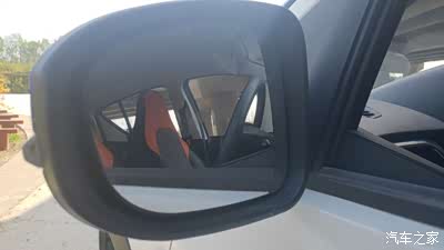 通过外后视镜看到车内座椅为一体式座椅,采用橘色、灰色、黑色三色搭配,橘色彰显年轻运动气息。而且一体化座椅很有运动赛车的感觉。