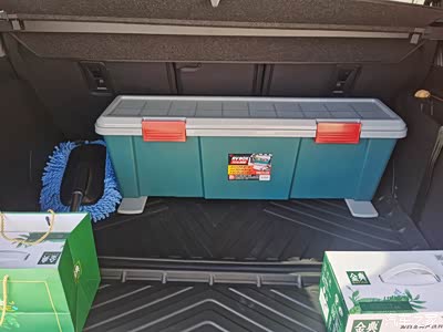 长+窄车载储物箱,放乱七八糟的东西。不过好像还是有点宽,本来想着买个窄点的,7座也可以用,不过试验了以下,7座的话,放后面后备箱盖有点盖不上,改天有时间再试试。